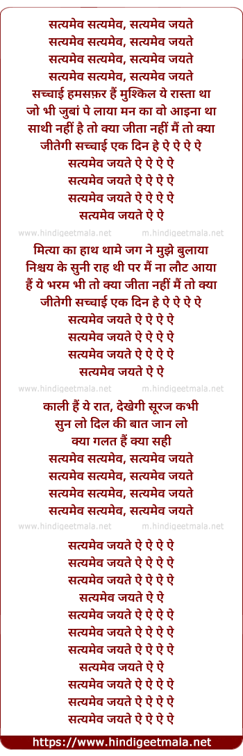 Lyrics of Satyaamev Jayate - सत्यमेव सत्यमेव, सत्यमेव जयते