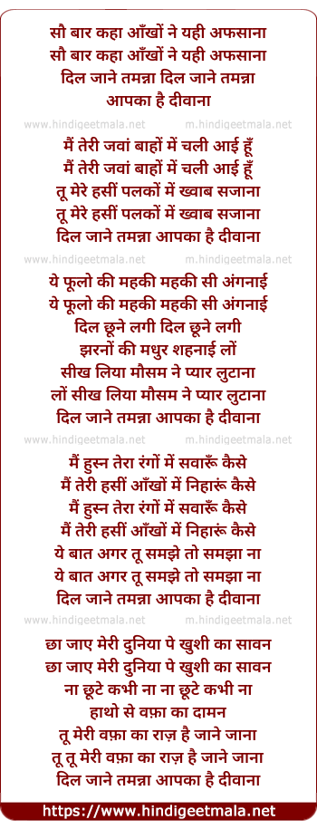 Lyrics of Sau Baar Kaha Aankho Ne - सौ बार कहा आँखों ने