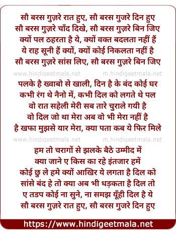 Lyrics of Sau Baras Guzre Raat Hue - सौ बरस गुज़रे रात हुए
