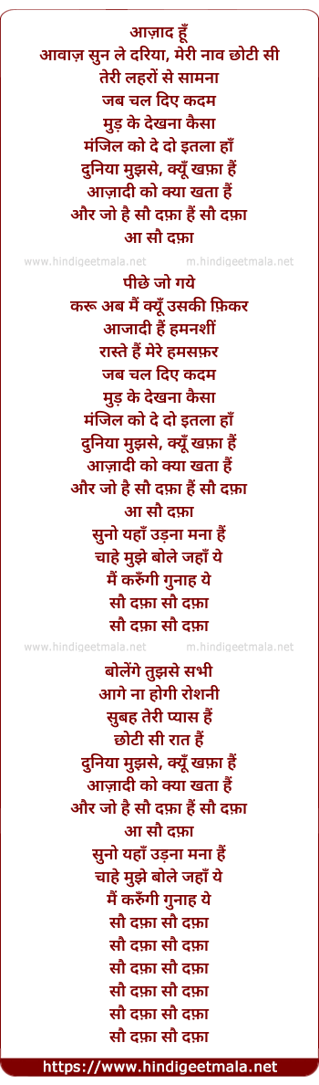 Lyrics of Sau Dafa - आज़ाद हूँ