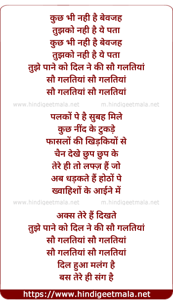 Lyrics of Sau Galtiya - सौ गलतियाँ