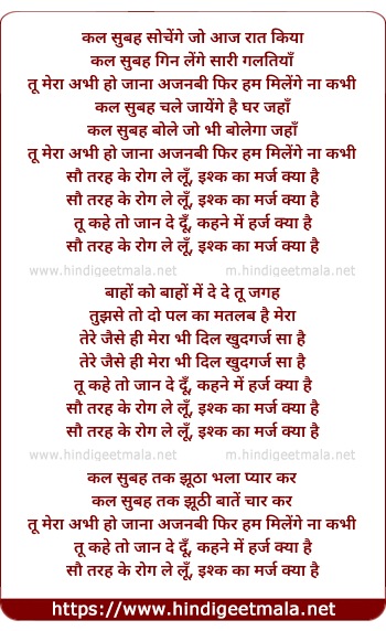 Lyrics of Sau Tarah Ke (Revisited) - कल सुबह सोचेंगे जो आज रात किया