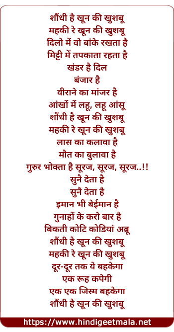 Lyrics of Saundhi Hai Khoon Ki Khushboo - सौंधी है खून की खुसबू