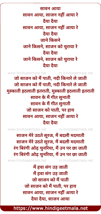 Lyrics of Sawan Aaya Sajan Nahi Aaya - सावन आया