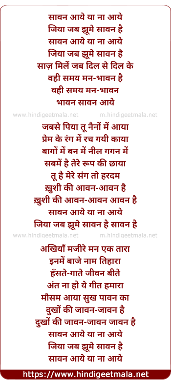 Lyrics of Sawan Aaye Ya Na - सावन आये या ना आये