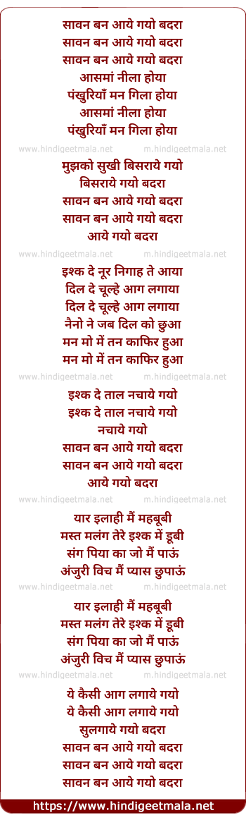 Lyrics of Sawan Ban Aay Gayo Badra - सावन बन आया गयो बदरा