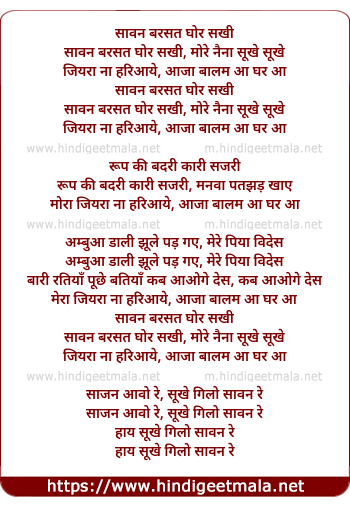 Lyrics of Sawan Barsat - सावन बरसत घोर सखी