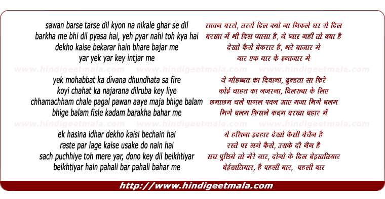 Lyrics of Sawan Barse Tarse Dil Kyu Na - सावन बरसे तरसे दिल