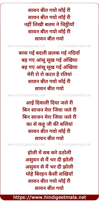 Lyrics of Sawan Beet Gayo Mayi Ri - सावन बीत गयो माँई री