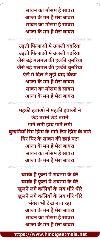 Lyrics of Sawan Ka Mausam Hai Sanwra - सावन का मौसम है सावरा