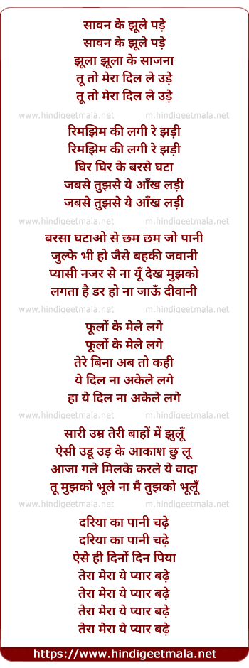 Lyrics of Sawan Ke Jhoole - सावन के झूले