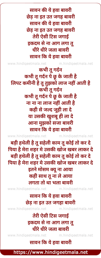 Lyrics of Sawan Ki Aaye Hawa - सावन की आये हवा