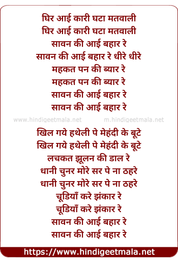 Lyrics of Sawan Ki Aayi Bahar Re - सावन की आई बहार रे