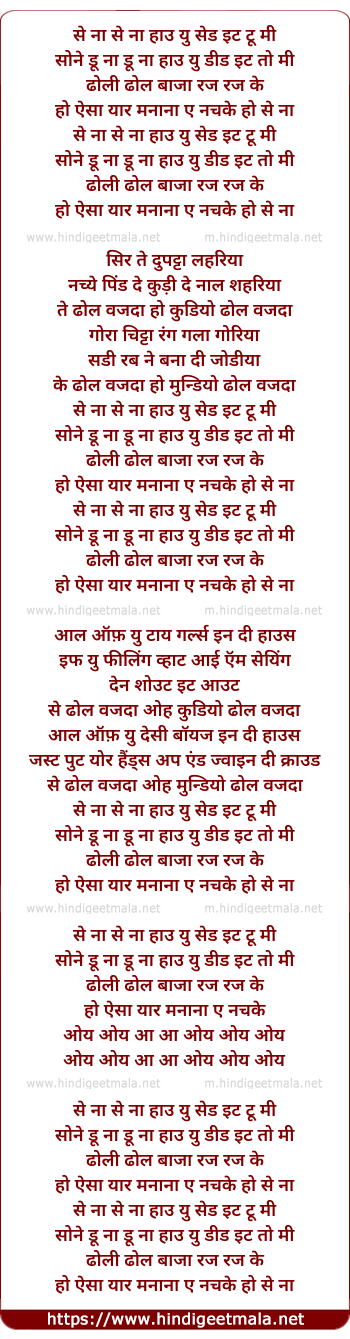 Lyrics of Say Na Say Na, How U Said It To Me - से ना से ना हाउ यु सेड इट टू मी