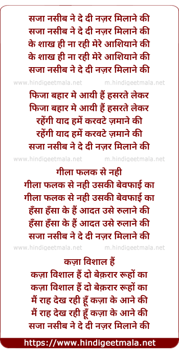 Lyrics of Saza Nasib Ne De Di Najar Milane Ki - सजा नसीब ने दे दी नज़र मिलाने की