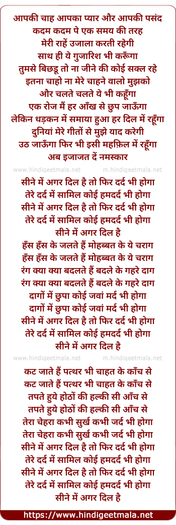 Lyrics of Seene Mai Agar Dil Hai - सीने में अगर दिल है