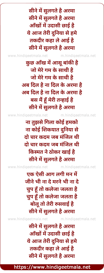 Lyrics of Seene Me Sulagte Hai Arman - सीने में सुलगते है अरमान