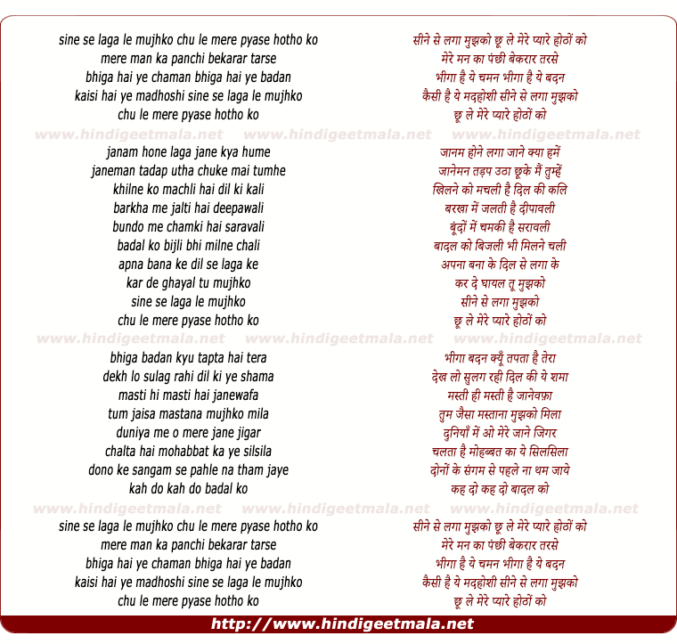 Lyrics of Seene Se Laga Le Mujhko - सीने से लगा मुझको
