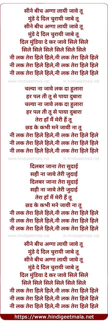 Lyrics of Seene Vich Agga - सीने बीच अग्गा