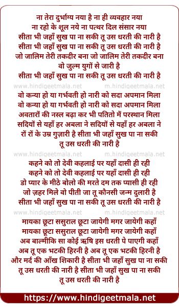 Lyrics of Seeta Bhi Jahan Sukh Pa Na Sakhi - सीता भी जहाँ सुख पा ना सकी