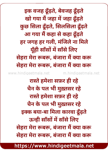 sehra mere rubaru, banjara main kya karoo