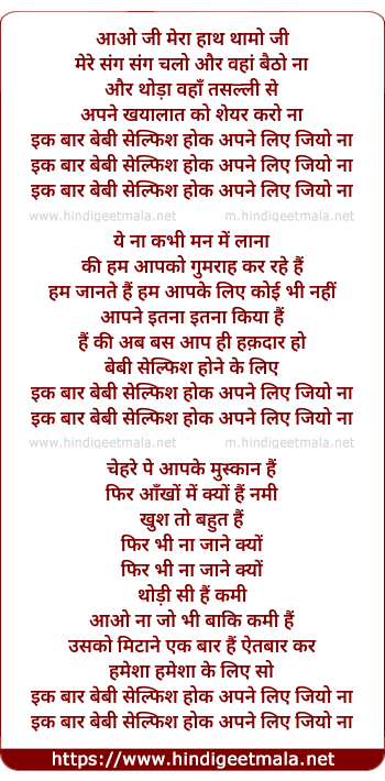 Lyrics of Ik Baar Baby Selfish Hoke - इक बार बेबी सेल्फिस होके