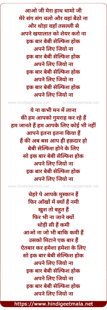 Lyrics of Selfish (Unplugged) - सेफिस