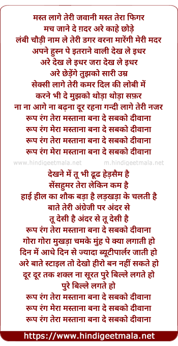 roop rang tera mastana bana de sabko deewana