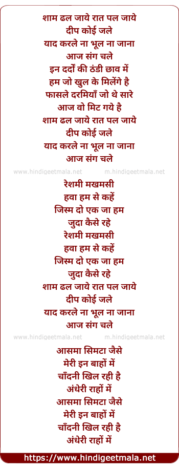 Lyrics of Shaam Dhal Jaaye - शाम ढल जाये