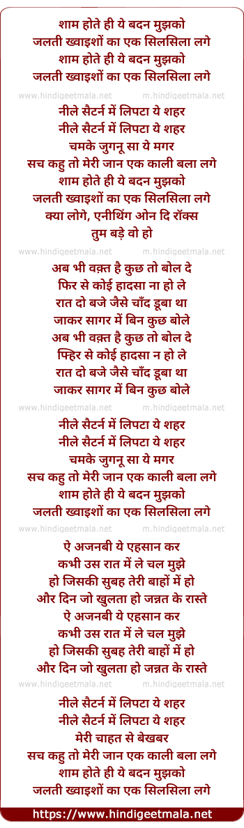 Lyrics of Shaam Hote Hi - शाम होते ही ये बदन मुझको