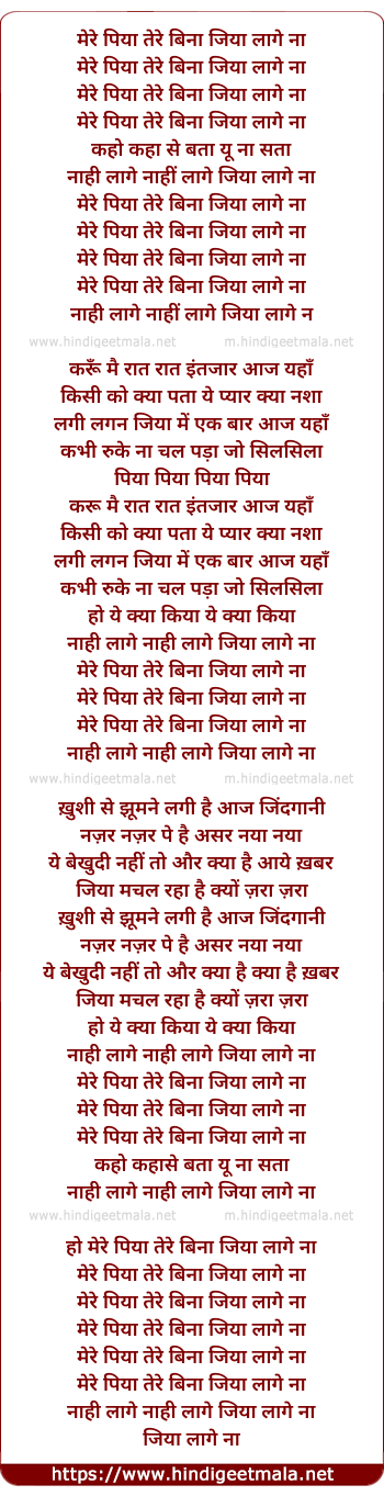 Lyrics of Mere Piya Tere Bina - मेरे पिया तेरे बिना