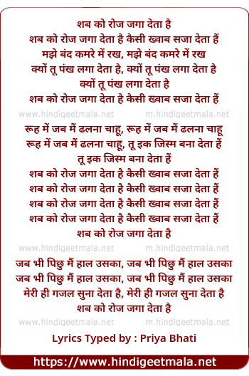 Lyrics of Shab Ko Roz Jagaa Deta Hai - शब को रोज जगा देता है