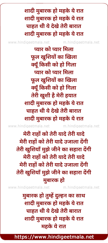 Lyrics of Shadi Mubarak Ho Mahke Ye Rat - शादी मुबारक हो महके ये रात