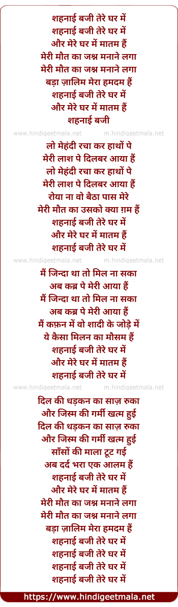 Poetic Translation - Lyrics of Shahanai Baji Mere Ghar Mein - शहनाई बजी तेरे घर में