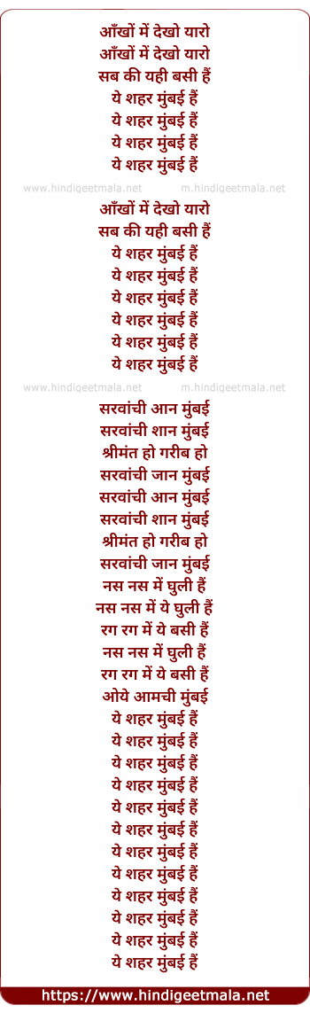 Lyrics of Shahar Mumbai Hai - शहर मुंबई है