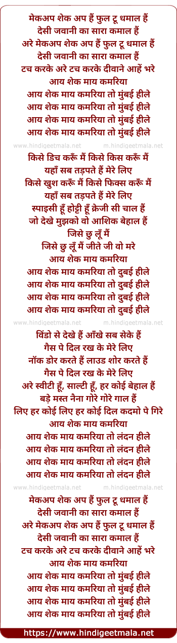 Lyrics of Shake My Kamariya - शेक माय कमरिया