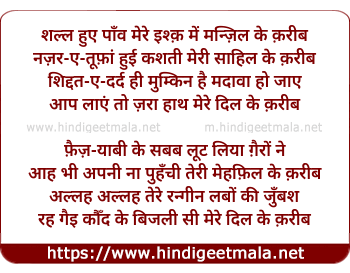 Lyrics of Shall Hue Paanv Mere - शल्ल हुए पाँव मेरे इश्क़ में मन्ज़िल के क़रीब
