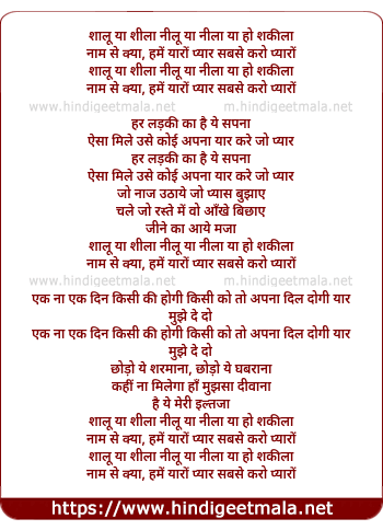 Lyrics of Shalu Ya Sheela Nilu Ya Neela - शालू या शीला नीलू या नीला