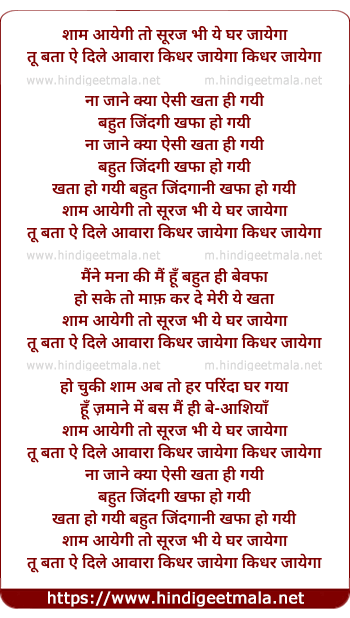 Lyrics of Sham Aayegi To Suraj Bhi Ye Ghar Jayega - शाम आयेगी तो सूरज भी ये घर जायेगा
