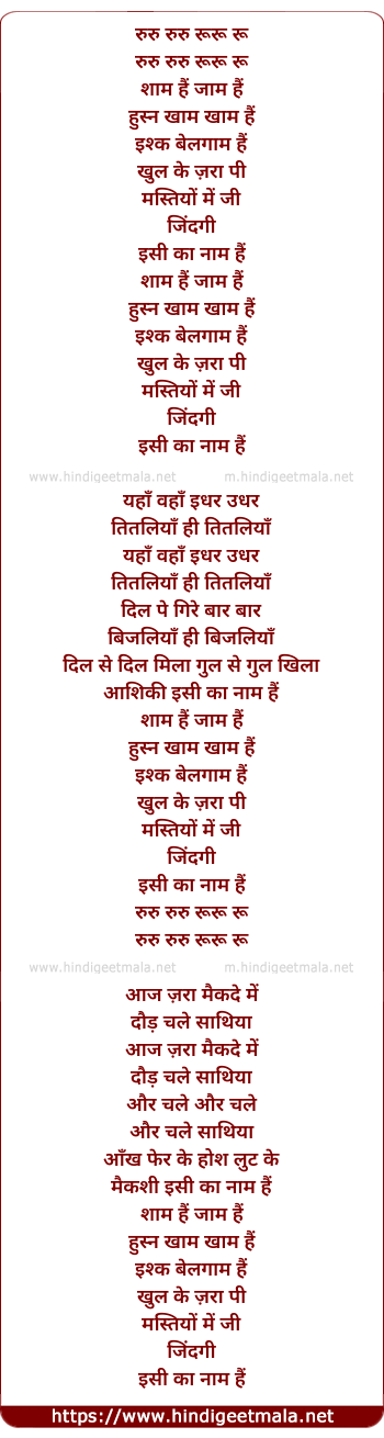 Lyrics of Sham Hai Jaam Hai - शाम है जाम है