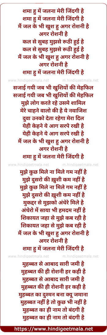 Lyrics of Shama Hu Mai - शमा हूँ मैं