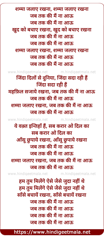 shamma jalaye rakhna, jab tak ki main na aau