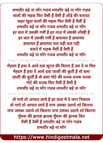 Lyrics of Shamshir Berehna Maang Gazab - शमशीर बहेना माँग गजब