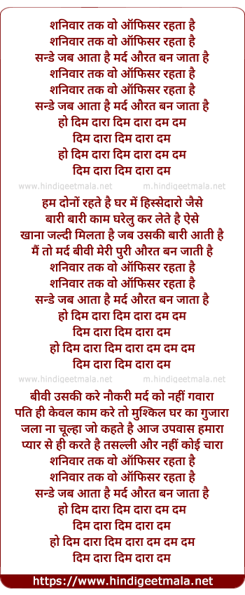 Lyrics of Shanivaar Tak Wo Officer Rahta Hai - शनिवार तक वो ऑफिसर रहता है