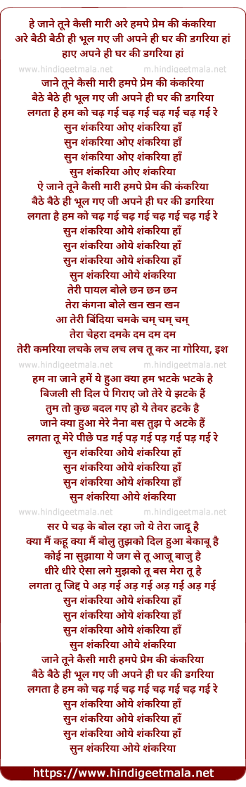 ye jane tune kaisi mari humpe prem ki kankariya