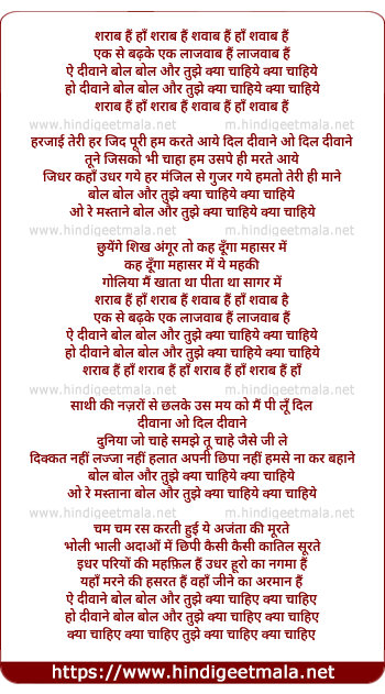 Lyrics of Sharaab Hai Shabaab Hai - शराब हैं शवाब हैं