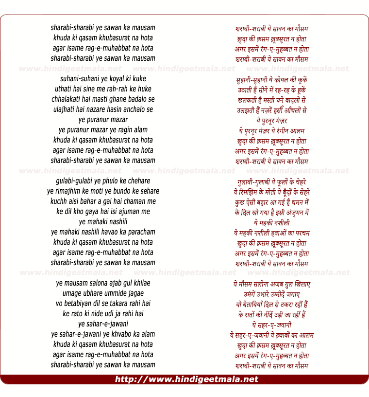 Lyrics of Sharaabi Sharaabi Ye Saawan Ka Mausam - शराबी-शराबी ये सावन का मौसम