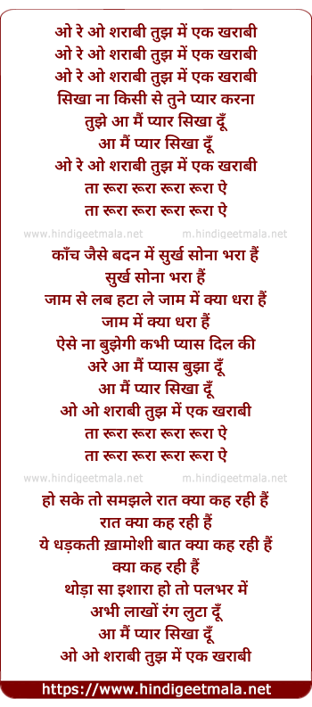 Lyrics of O Re O Sharabi Tujh Me Ek Kharabi - ओ रे ओ शराबी तुझ में एक खराबी