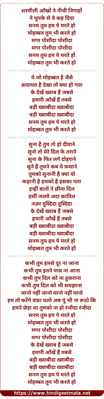 Poetic Translation - Lyrics of Sharamili Aankhon Ne, Sanam Tum Ham Pe Marate Ho - शरमीली आँखों ने, सनम तुम हम पे मरते हो