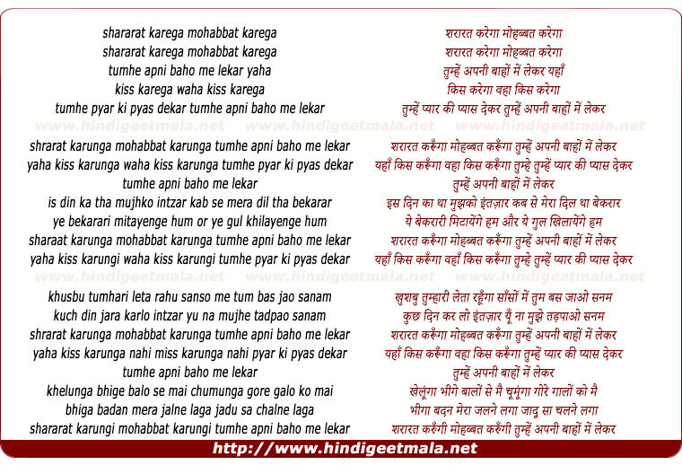 Comments for lyrics of song "Shararat Karunga Mohabbat Karega"